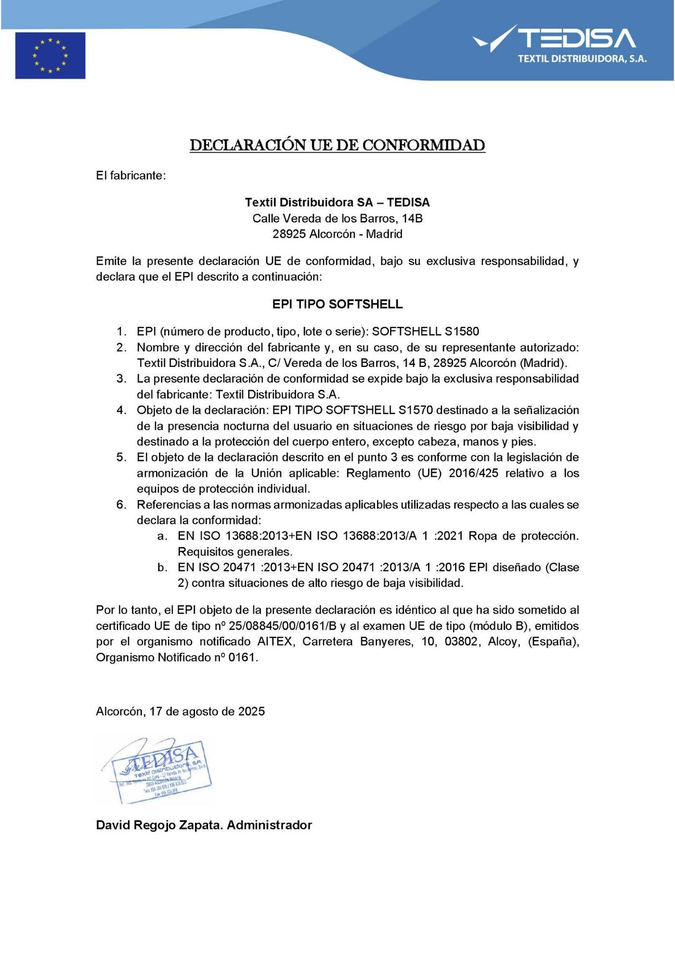 Declaración EU de Conformidad