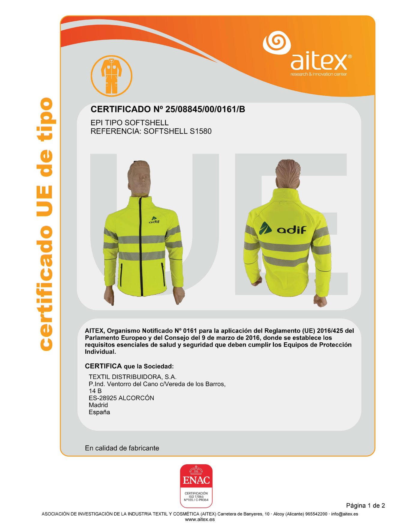 CERTIFICADO Nº: 25/08845/00/0161/B